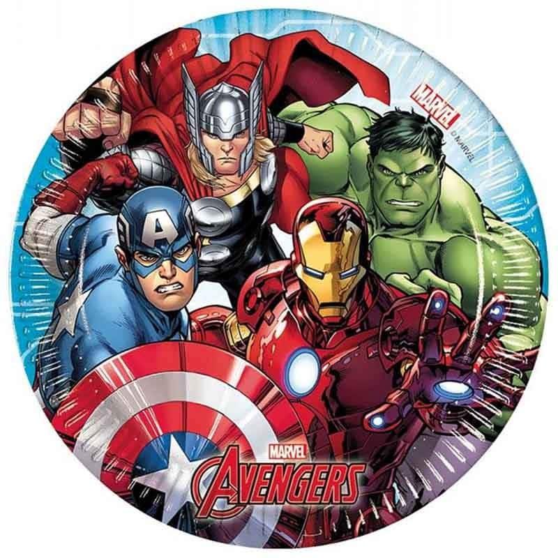 - 🍽️ 8 piatti di carta "Avengers Mighty" da 23 cm