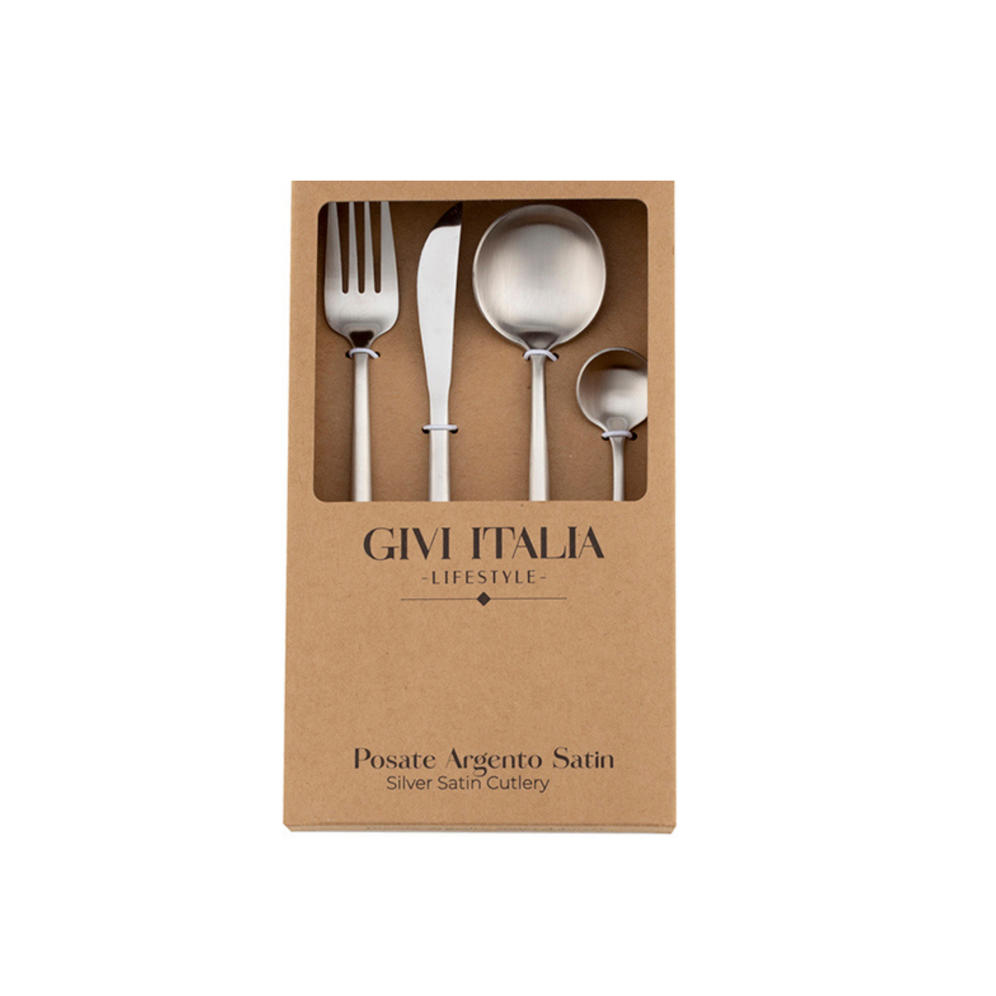 Set Posate Acciaio Inox Argento Satinato pz4 a cf.