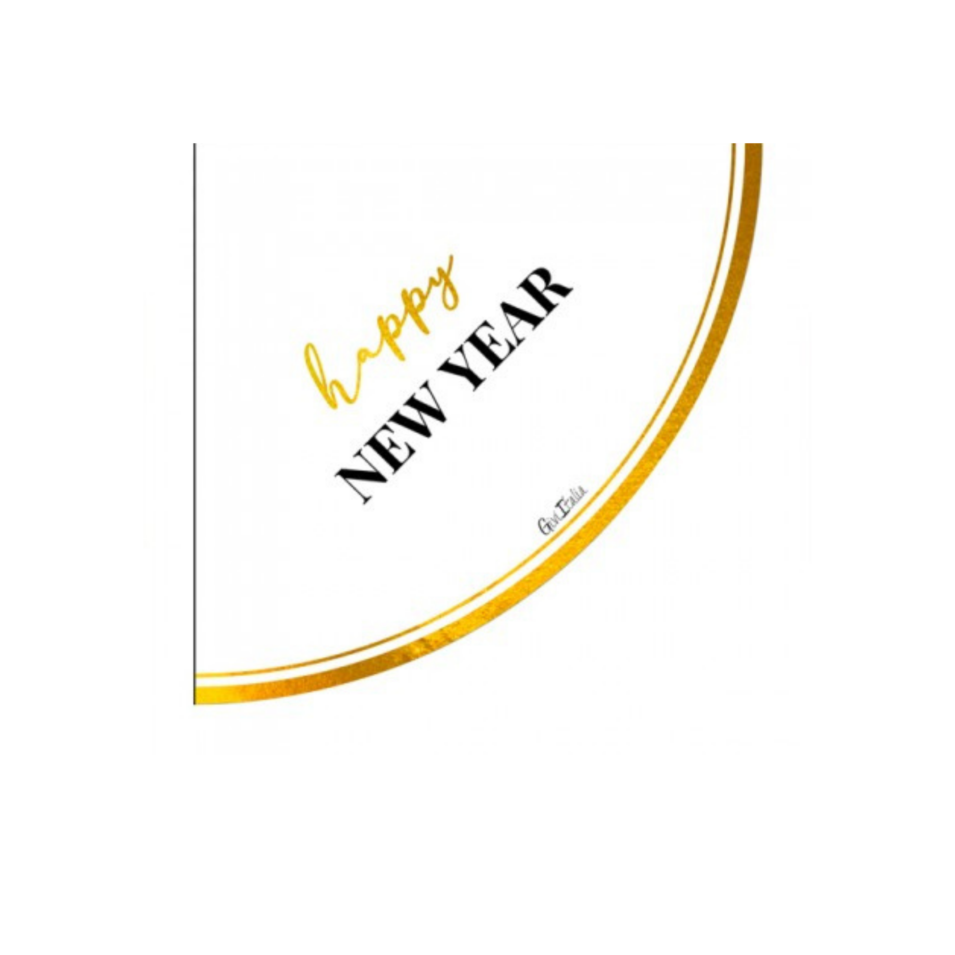 - Colore: Bianco e oro con scritta "Happy New Year"